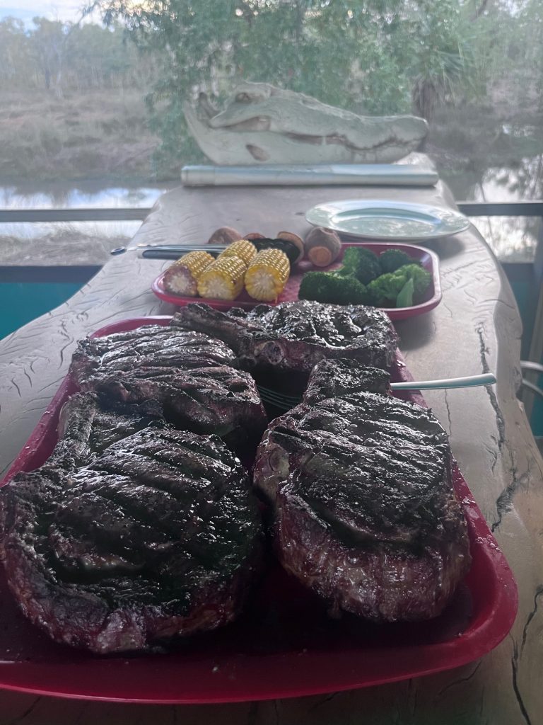 Relaxing near your tent, around the barbecue or by the fire pit with a local Australian cold beer or wine is always very nice after a day’s hunting. Our tent camp is located on the banks of the Roper River and it’s tributaries with majestic views is a very relaxing and calming spot. A great place for the non hunter, as well as the hunter, to relax while on a great safari vacation.