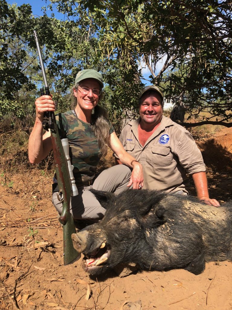 Australian Outfitters by Andrew Mackay puts hunters on Trophy Wild Boar in conjunction with our Free Ranging Water Buffalo hunts. You will see Wild Boar throughout the day while searching for other species, which is always a thrill. Wild Boar will also visit the carcasses of previous Buffalo and Scrub Bull hunts.